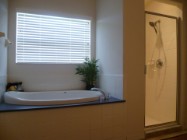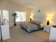 Ein Masterschlafzimmer mit Kingsize Bett, Kommode und begehbarem Kleiderschrank mit Direktzugang zu einem großzügigen Masterbad mit Doppelwaschtisch, Römischer Dusche und Badewanne. Gästezimmer 1: Queen Bett. Gästezimmer 2: 2 Einzelbetten, Gästezimmer 3: Queen Bett. Gästebad mit Waschtisch, Dusche/Badewanne. Zur Ausstattung gehören auch ein Kinderreisebett und ein Babyhochstuhl.